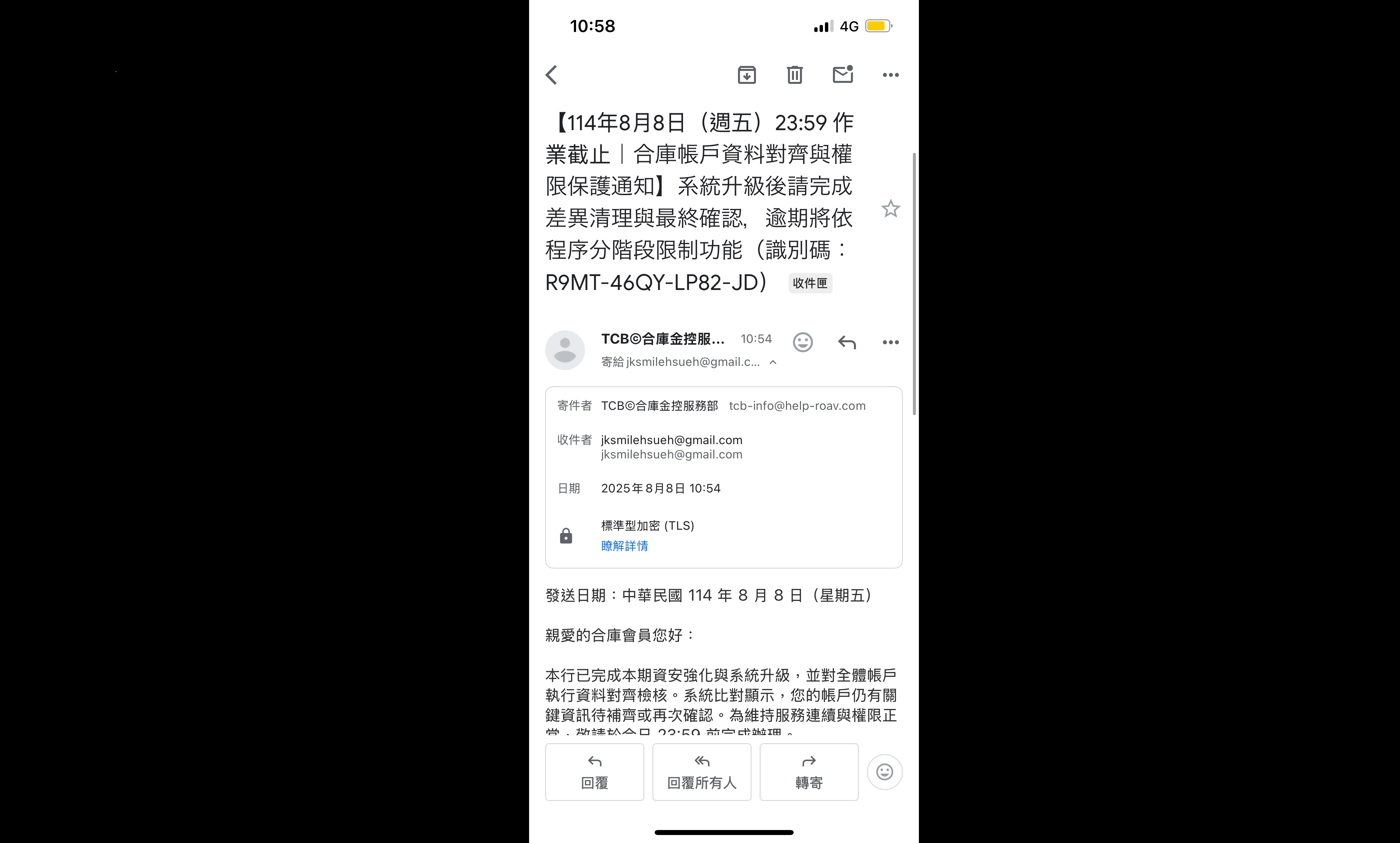 收到銀行帳務交易APP截圖時,務必同步於網路銀行/行動網銀再次確認帳務資訊。